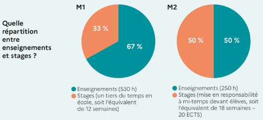 - en M2, un stage en responsabilité devant élèves à mi-temps de 18 semaines.